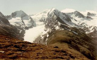 04.08.1960 - Blick von der Hohen Mutt zum Hochfirst und Rotmoosgletscher.
