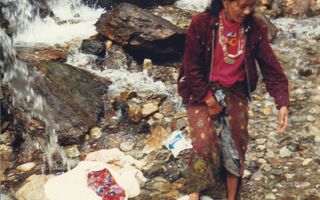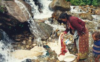 Gewaschen wird im Bach