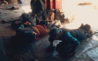 Niederwerfung vor dem Jogkhang – Tempel 20.Oktober 1986