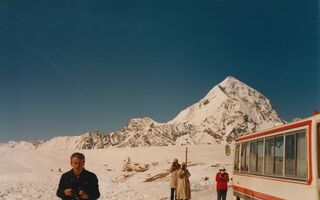 16.10.1986 an diessen Tag bestieg R. Messner den Lhotse seinen 14. Achttausender! Einfaches Gästehaus in Shigar. Fahrt über Thatso La 5 250m, Lahtse 4 080m, Hi Tsching – warme Mineralquellen, Po La 4 500m, nach Shigatsee 3 900m