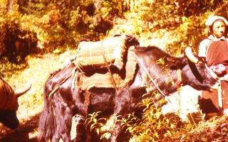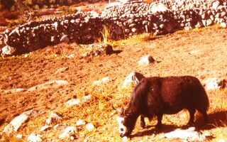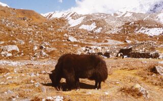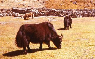 Weidende Yak in Phhukhung