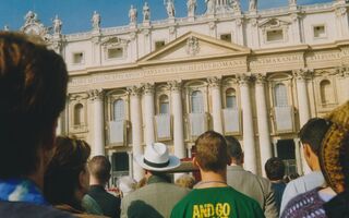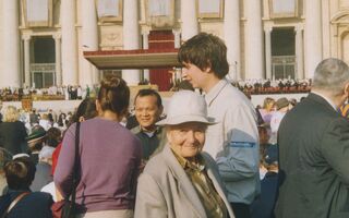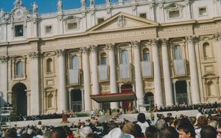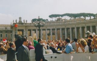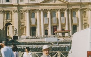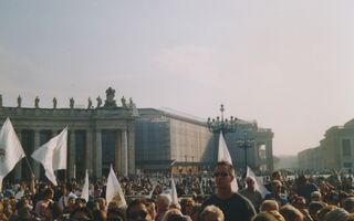 3.10.2004 Ich stehe auf dem Petersplatz vor der Papstmesse.