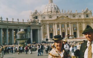 Frau und Herr Steger vor der größten gemauerten Kuppel der Welt.